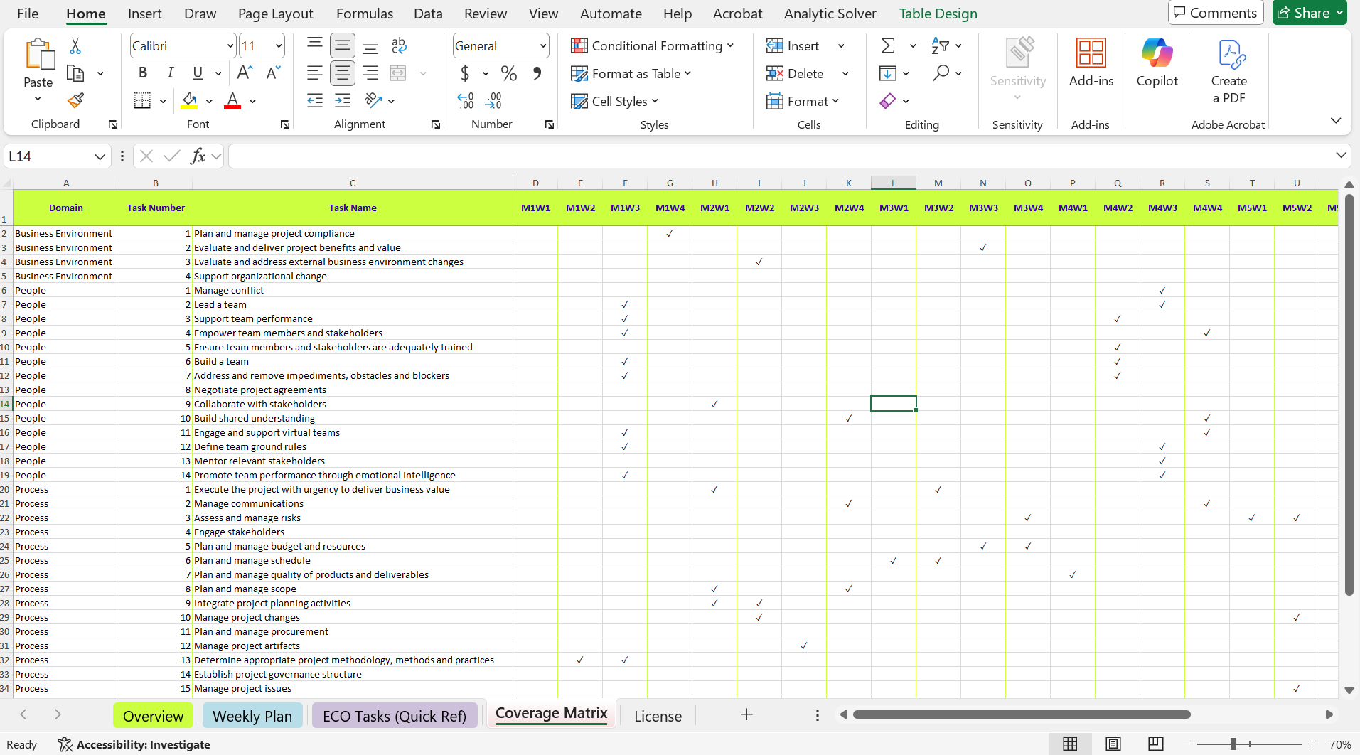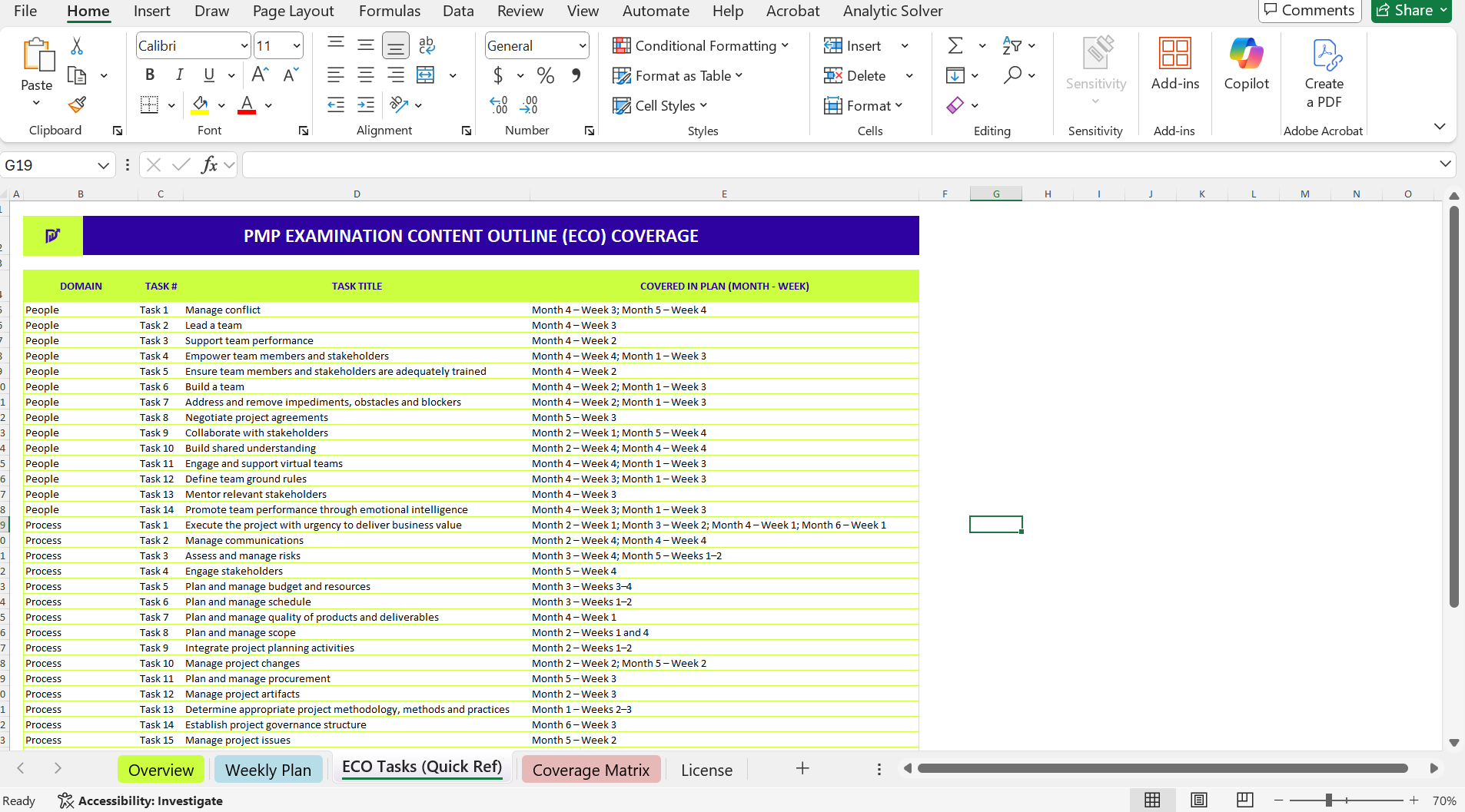 24-week Excel schedule (ECO-aligned, with weekly deliverables)
